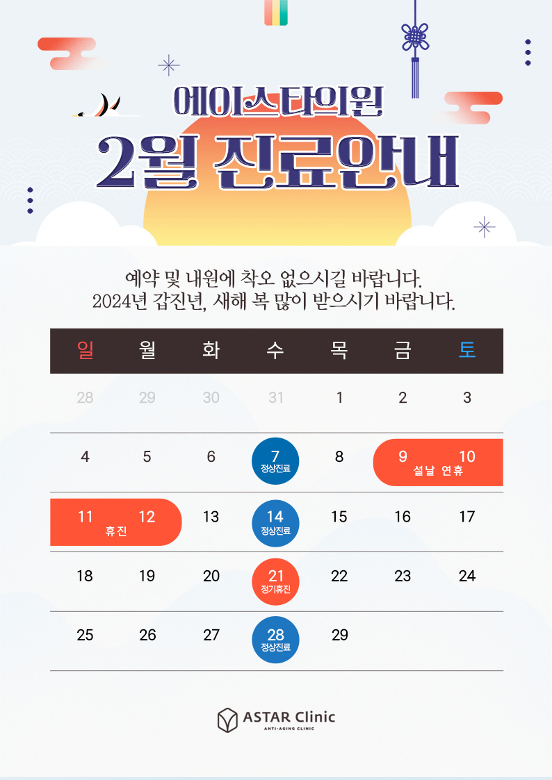 아래와 같이 2024년 2월 진료 일정 안내드립니다.