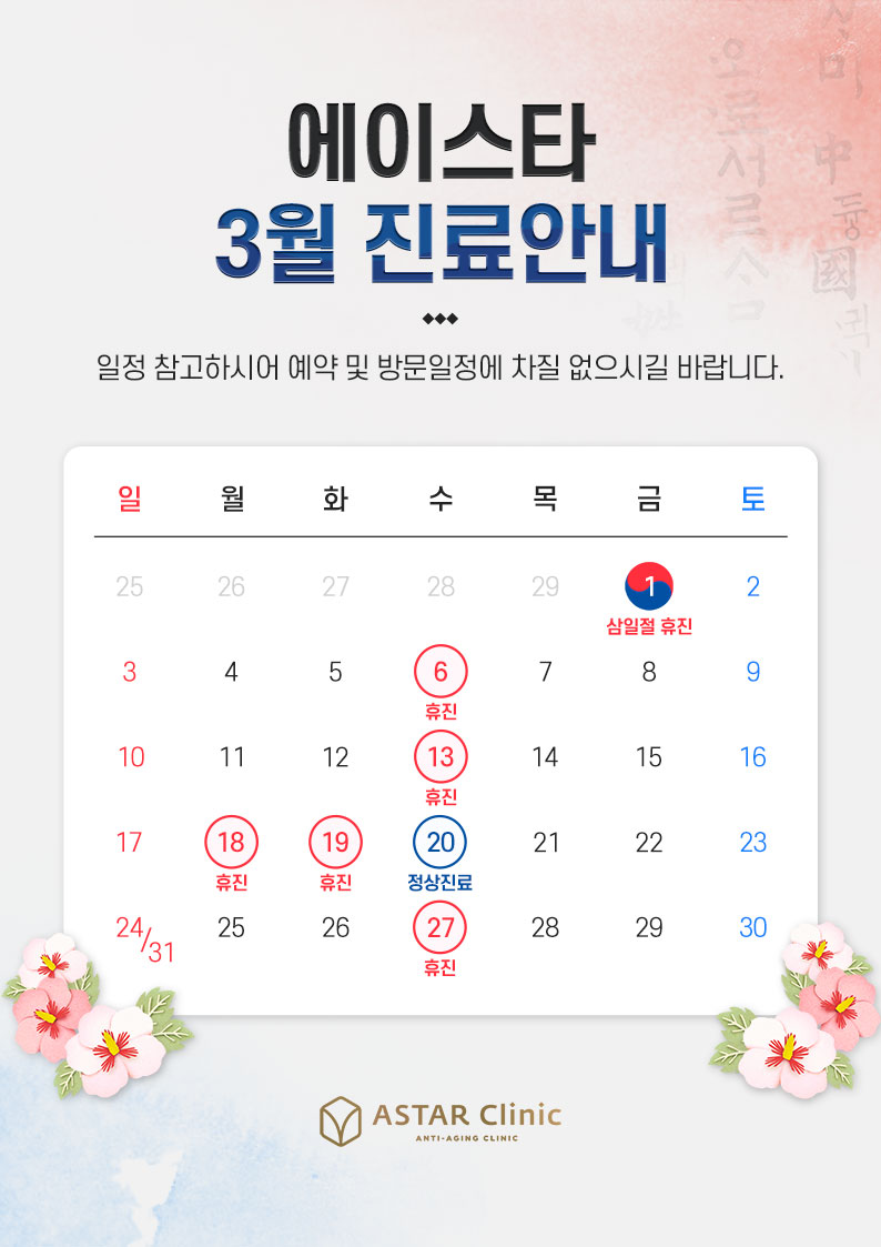 아래와 같이 2024년 3월 진료 일정 안내드립니다.