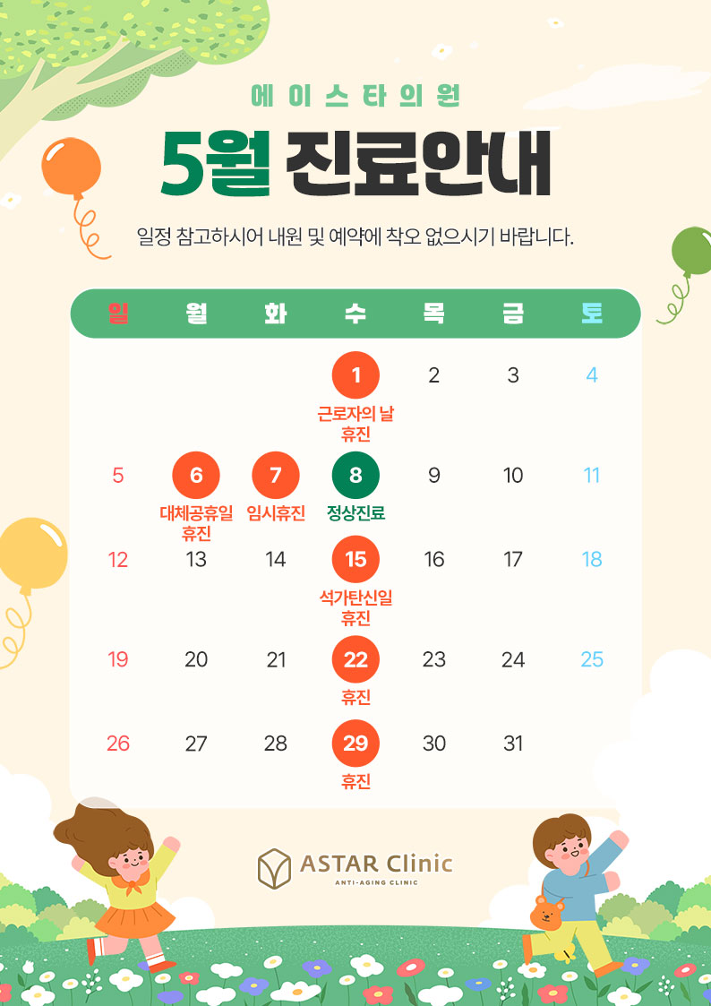아래와 같이 2024년 5월 진료 일정 안내드립니다.