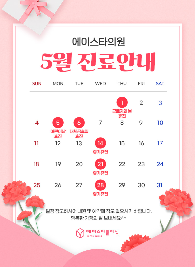 아래와 같이 2025년 05월 진료 일정 안내드립니다.