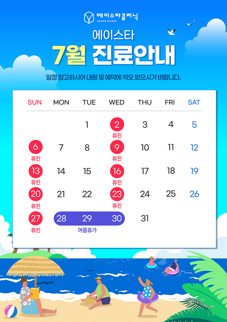 아래와 같이 2025년 07월 진료 일정 안내드립니다.