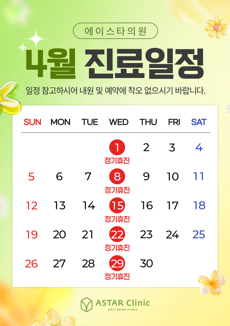 아래와 같이 2026년 04월 진료 일정 안내드립니다.
